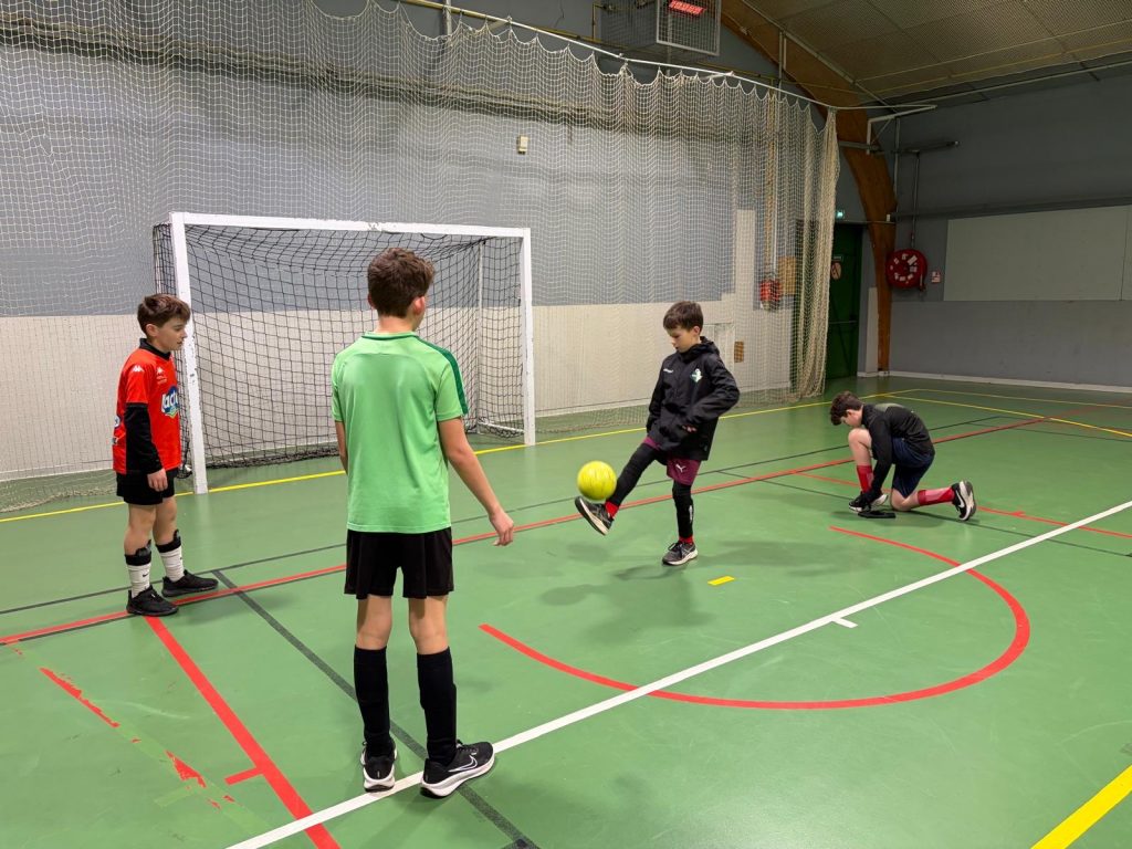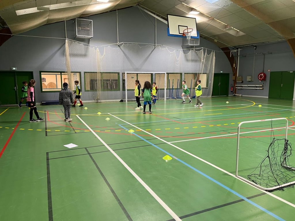 Tous les mardis, pendant 2h, l’option foot qui réunit 21 élèves en classe de 6ème se retrouve pour réaliser des séances de football ou de futsal selon la période.